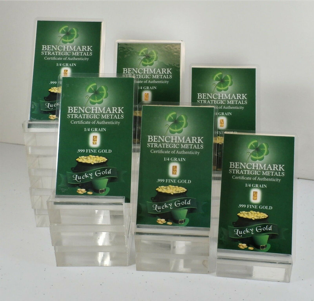 LOT X 6 “POT O’ GOLD” 1/60 GRAM .9999 FINE 24K GOLD BULLION BARS - IN COA CARD