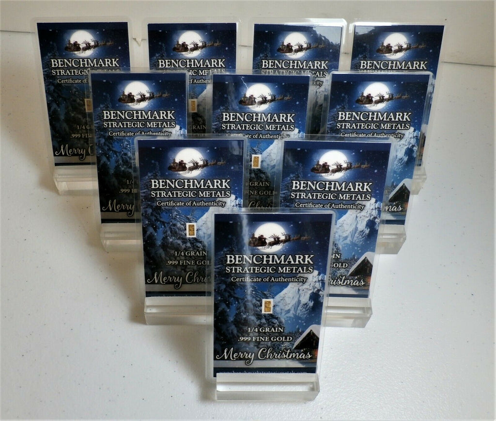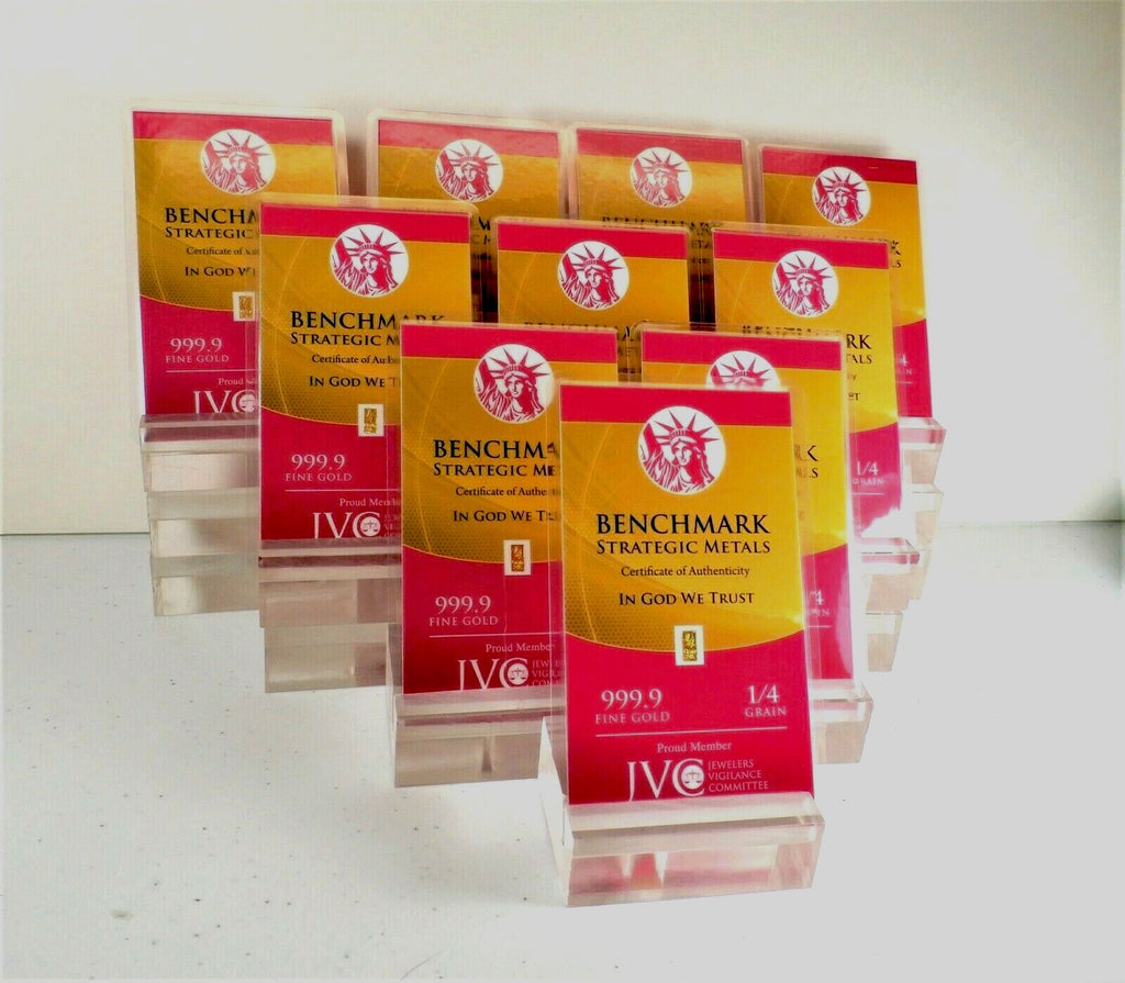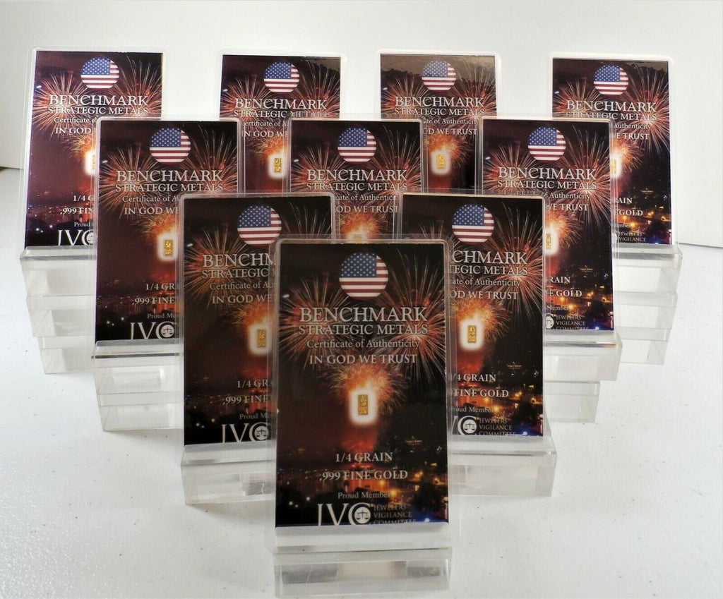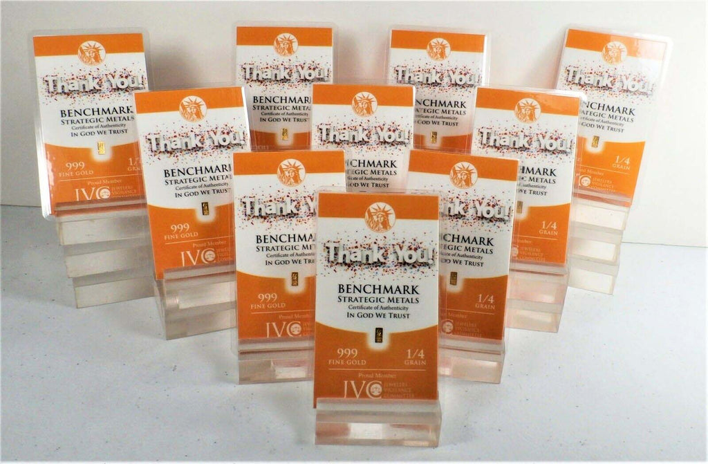 LOT 10 X 1/4 GRAIN .9999 FINE 24K GOLD BULLION BAR - IN COA CARD