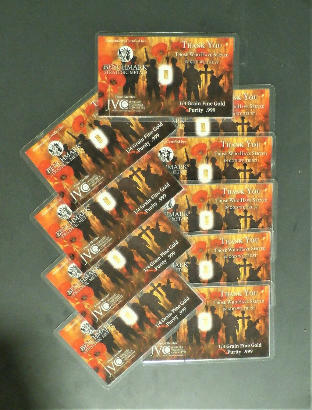 10 X 1/4 GRAIN .9999 FINE 24K GOLD BULLION BARS “THANK YOU TO THOSE WHO HAVE SERVED” - IN COA CARD