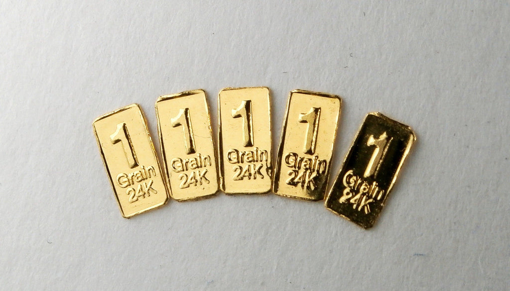 LOT 5 X 1 GRAIN .9999 FINE 24K GOLD BULLION BAR - IN COA CARD