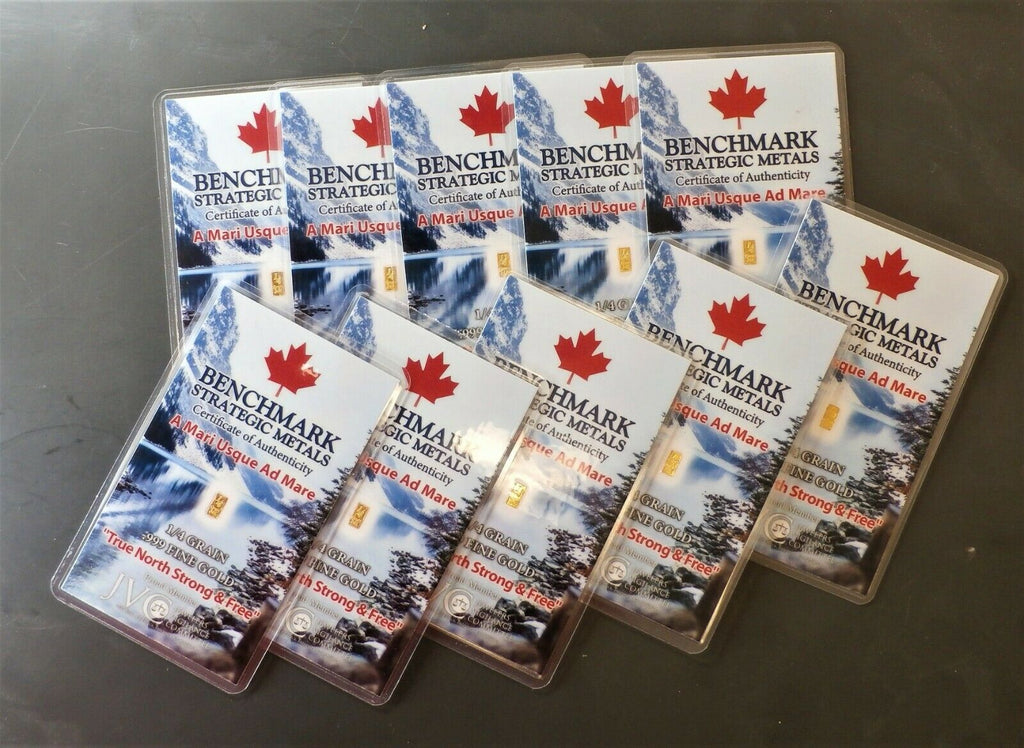 LOT 10 X 1/4 GRAIN .9999 FINE 24K GOLD BULLION BARS “CANADA GOLD CARD” - IN COA CARD