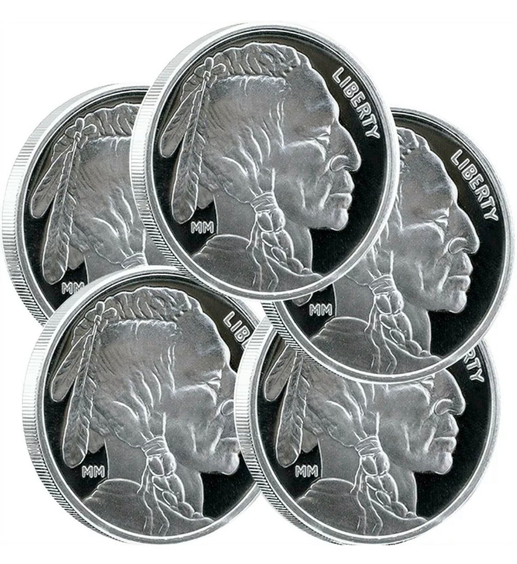 LOT 5 X 1 TROY OZ .999 FINE SILVER MASON MINT BUFFALO ROUNDS BU