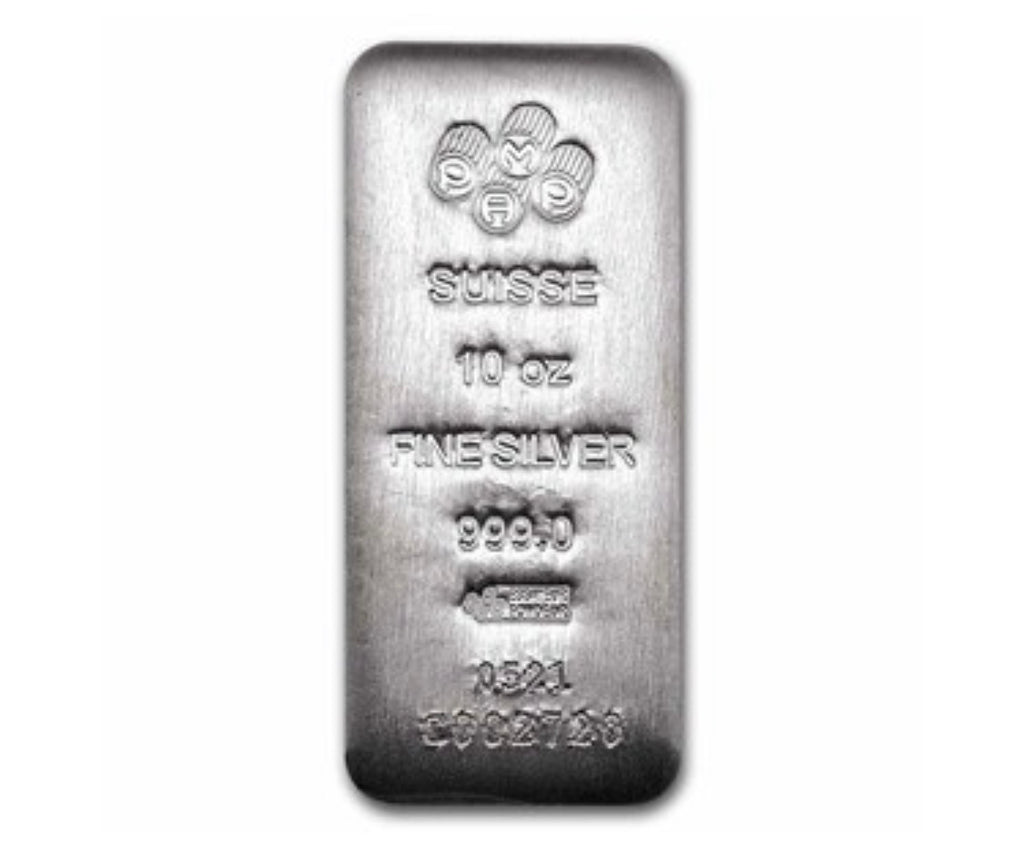 10 TROY OZ .999 FINE SILVER PAMP SUISSE BAR CAST IGNOT BU