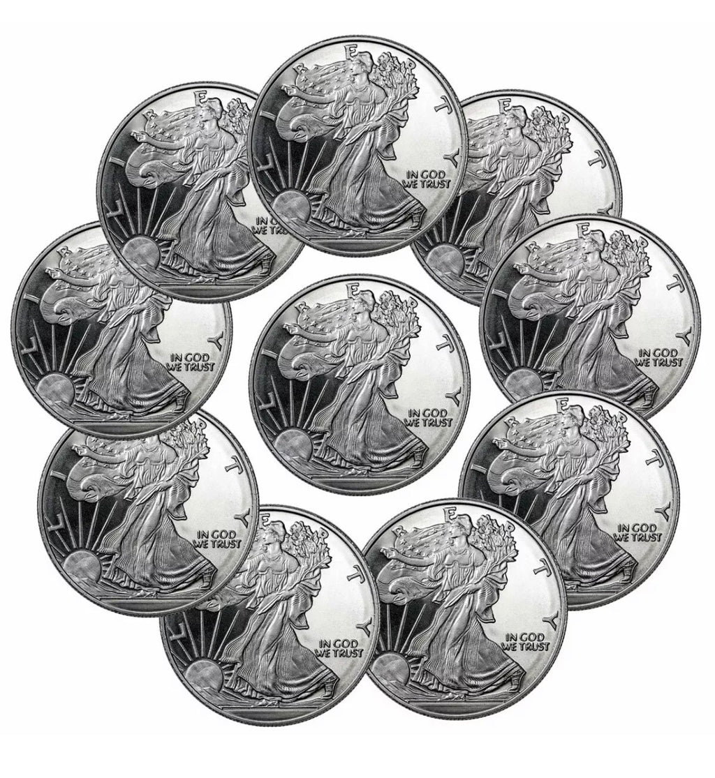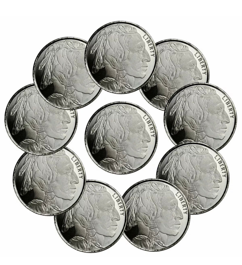 LOT 10 X 1 TROY OZ .999 FINE SILVER WALKING LIBERTY ROUNDS BU